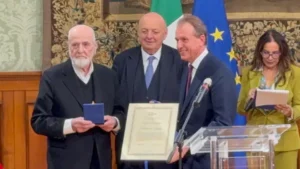 È stato Michelangelo Pistoletto il protagonista della seconda edizione del Premio De Sanctis Sostenibilità, premiato in una cerimonia istituzionale svoltasi nella suggestiva Sala Verde di Palazzo Chigi. A consegnare il riconoscimento è stato il presidente della Corte dei Conti, Guido Carlino, alla presenza del ministro dell’Ambiente, Gilberto Pichetto Fratin, e di numerosi rappresentanti delle istituzioni.