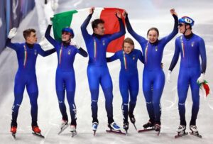 L’Italia conquista il primo oro olimpico nello short track a Milano con la staffetta mista composta da Arianna Fontana, Elisa Confortola, Thomas Nadalini e Pietro Sighel. Una gara impeccabile chiusa in 2’39”02 davanti a Canada e Belgio